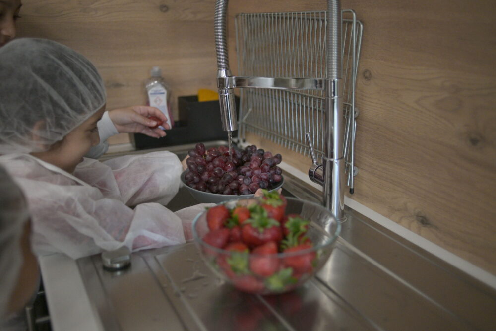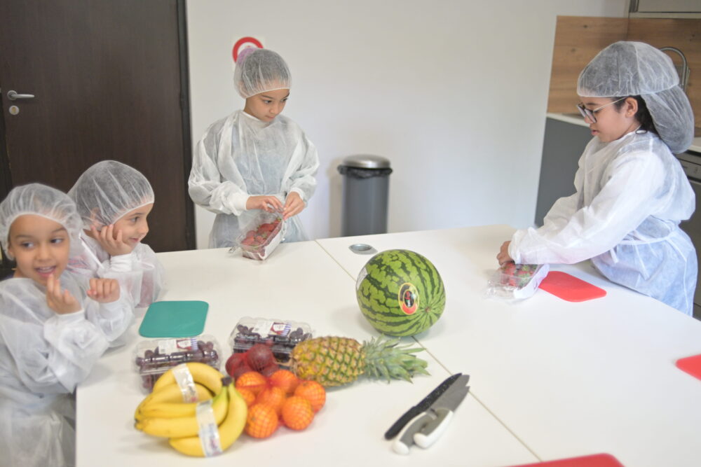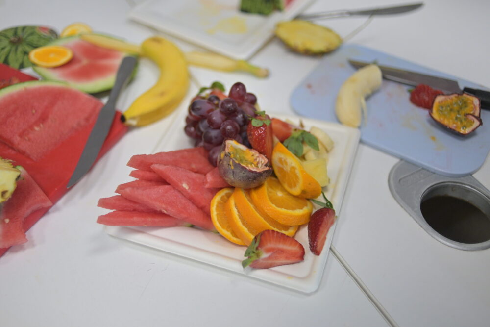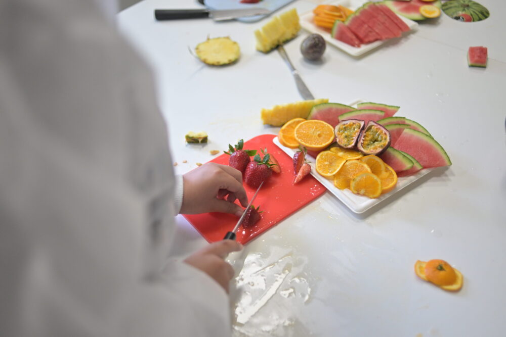 Encadrés par les équipes d’animation, les participants ont découvert les bases de la préparation culinaire à travers la manipulation de fruits frais. Lavage, découpe, assemblage… chaque étape a été l’occasion d’apprendre les bons gestes, notamment en matière d’hygiène alimentaire.