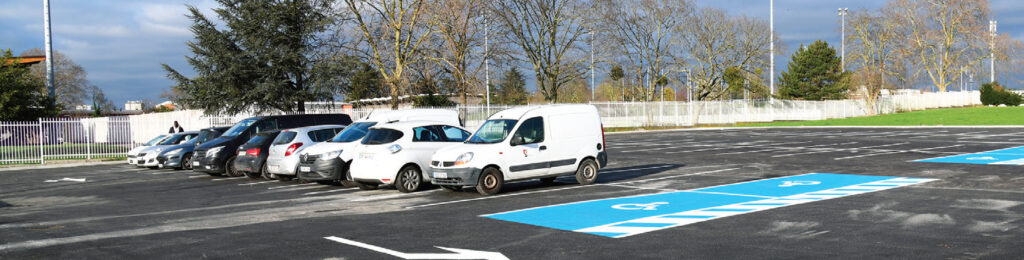 Agrandi, goudronné, il y a désormais 72 places de stationnement, 4 places pour personnes à mobilité réduite (PMR) et 6 places pour les deux-roues.