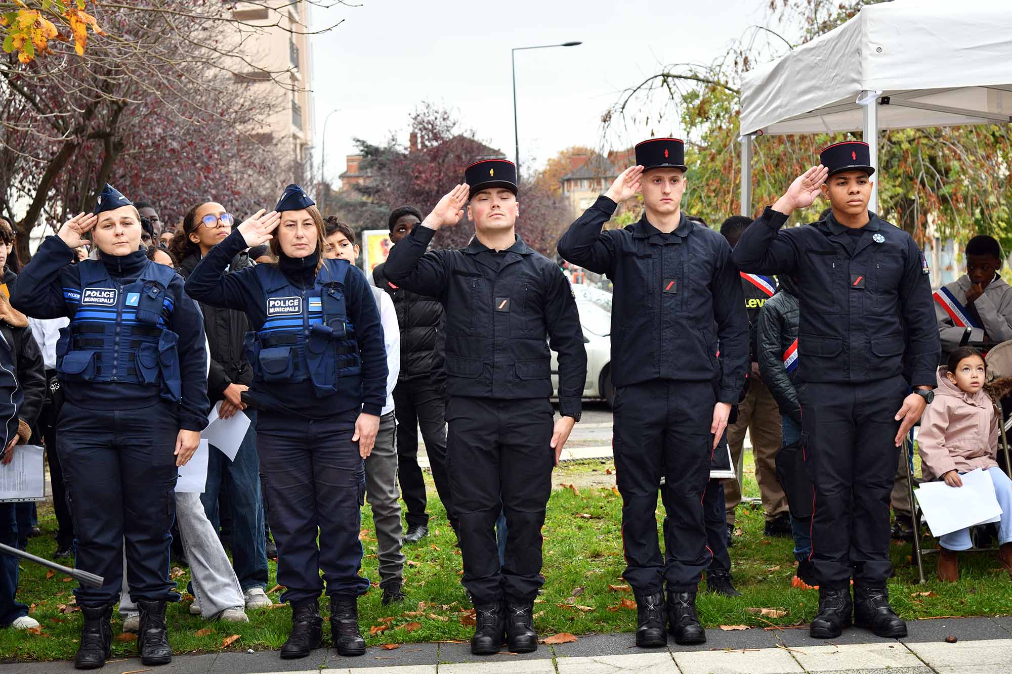 Rassemblés devant le monument aux morts, élus, associations d’anciens combattants, représentants des services municipaux, élèves du collège Sainte-Marie, membres du Conseil municipal des enfants et du Conseil consultatif de la jeunesse, ainsi que les sapeurs-pompiers et porteurs de drapeaux, ont pris part à ce moment de recueillement.
