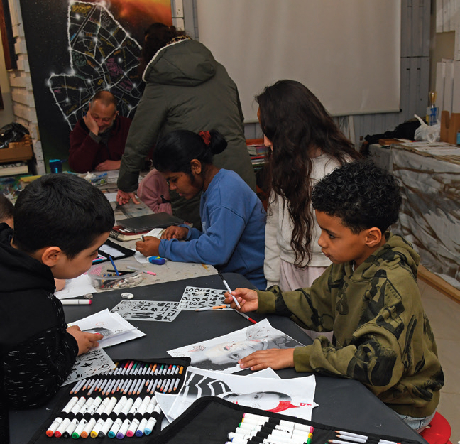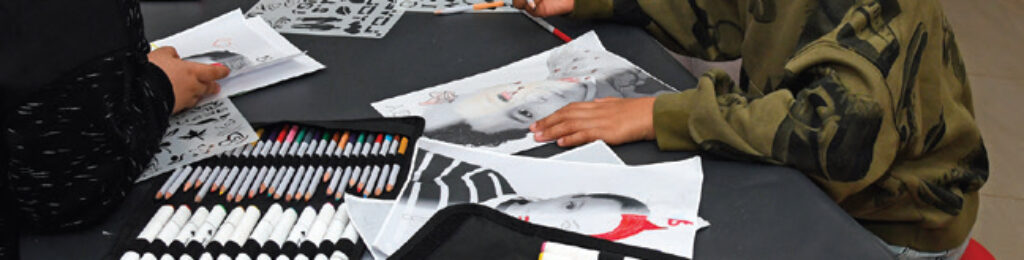 Ils ont également participé à un stage de graff, de dessin de portrait et de linogravure (un substitut à la gravure sur bois) qui était aussi au programme, tout comme le light painting ou la pikxlmosaïque.