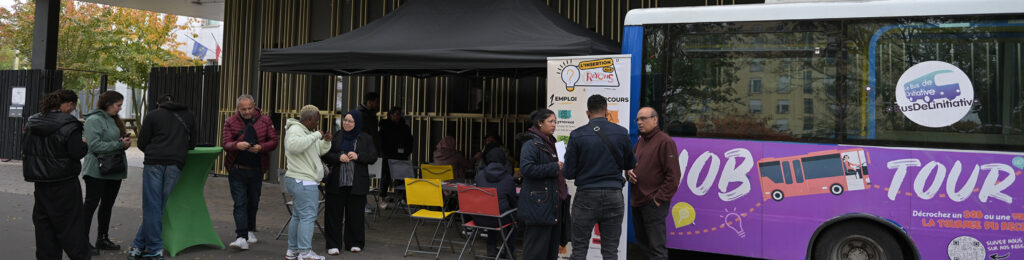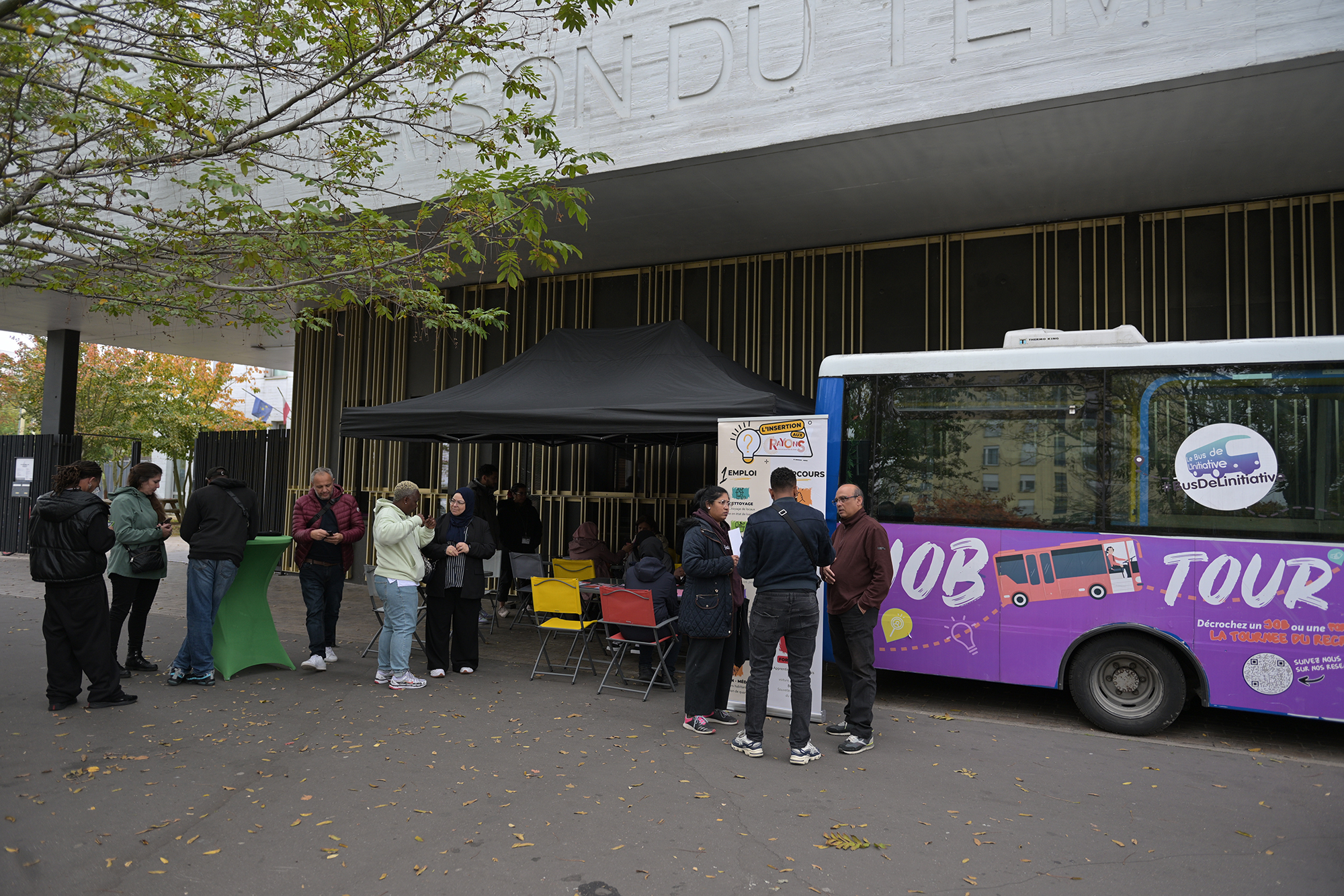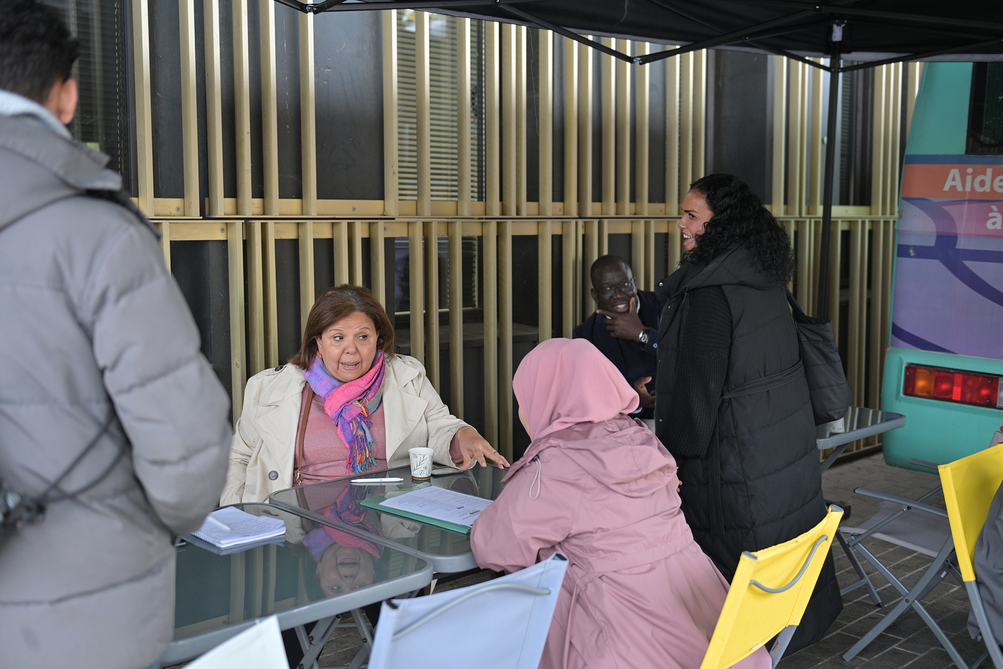 Tout au long de l’après-midi, avec le Bus de l’Initiative, les habitants ont pu échanger autour de l’emploi, de la formation et de la création d’activité avec les équipes de Plaine Commune, France Travail, la Régie de quartiers Les Rayons, ainsi qu’avec le secteur Développement emploi, formation et insertion de la Ville.