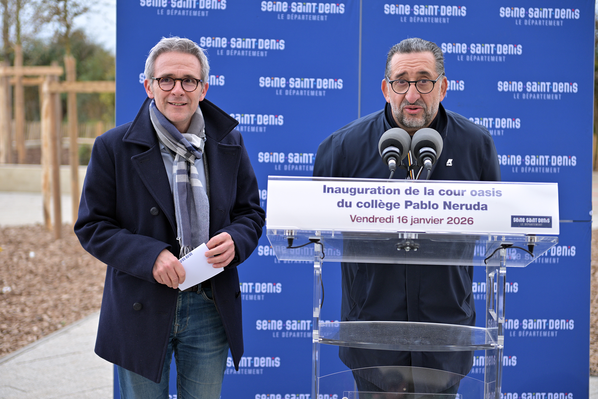 Le vendredi 16 janvier, le collège Pablo Neruda à Stains a inauguré sa nouvelle cour oasis, un projet porté par le Département de la Seine-Saint-Denis dans le cadre du dispositif « Priorités Collège ».