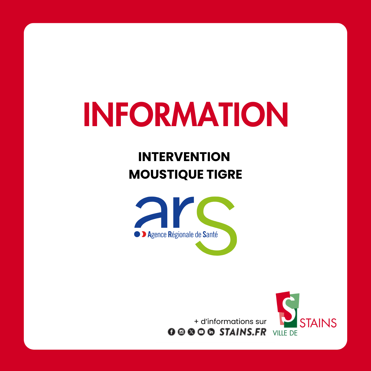 L’Agence Régionale de Santé (ARS) procédera aujourd’hui, entre 13h et 15h, à une intervention dans le quartier Paul Vaillant-Couturier en raison d’une prolifération de moustiques tigres.
