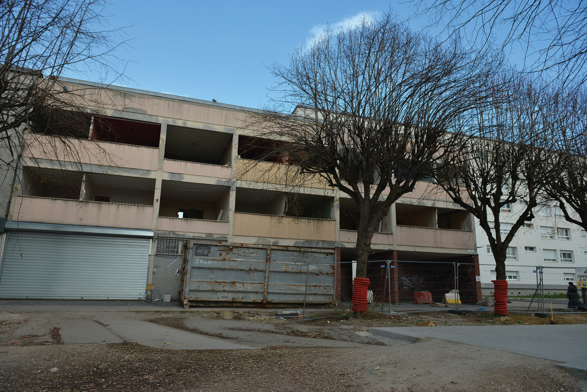 Pour préparer ces démolitions, le bailleur a lancé des travaux dans les bâtiments concernés, avec des opérations de désamiantage et curage. À l’intérieur, les radiateurs sont retirés et récupérés quand ils peuvent être réemployés, tout comme les revêtements de sol, menuiseries intérieures, réseaux et sanitaires.