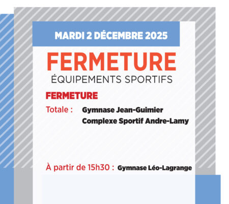 En raison d’un mouvement de grève annoncé ce mardi 2 décembre, la municipalité vous informe de la fermeture totale ou partielle de certains équipements sportifs.