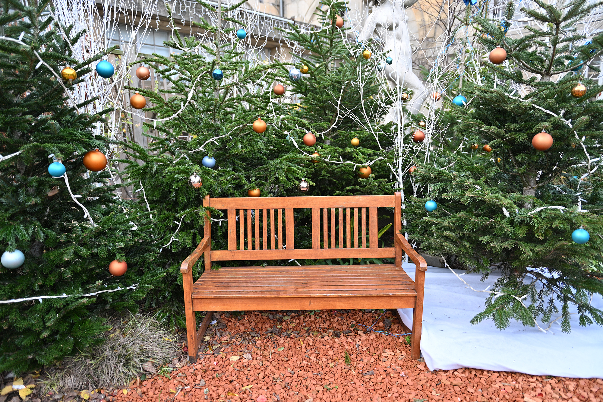 Un agencement lumineux à base de LED, mêlant guirlandes scintillantes et sapins décorés, vient illuminer le bâtiment et créer une atmosphère chaleureuse et conviviale au cœur de la ville.