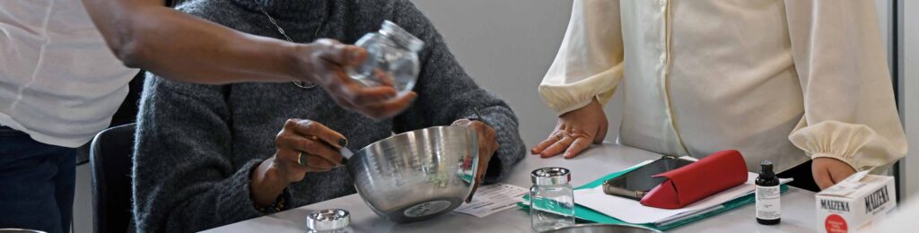 Réunies dans une ambiance conviviale et bienveillante, les participantes ont découvert les bases de la cosmétique naturelle, tout en étant sensibilisées aux effets de certains composants du quotidien, notamment les perturbateurs endocriniens. Guidées pas à pas, elles ont appris à sélectionner des ingrédients simples et sains, avant de réaliser leur propre préparation.
