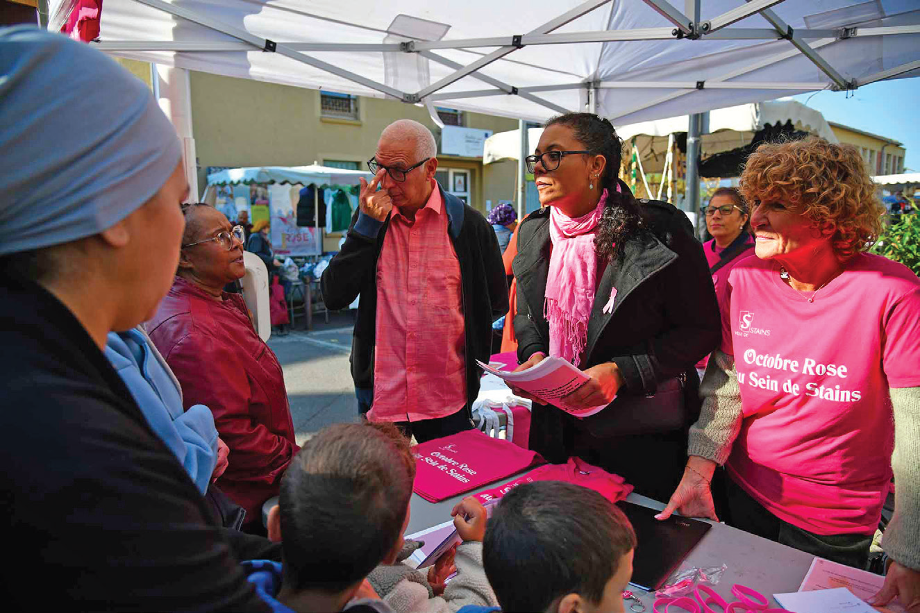 Octobre rose a commencé à Stains avec des stands de prévention aux quatre coins de la ville. Deux rendez-vous importants sont encore programmés, la journée de dépistage du jeudi 16 octobre au CMS et la traditionnelle marche festive, samedi 18 octobre.