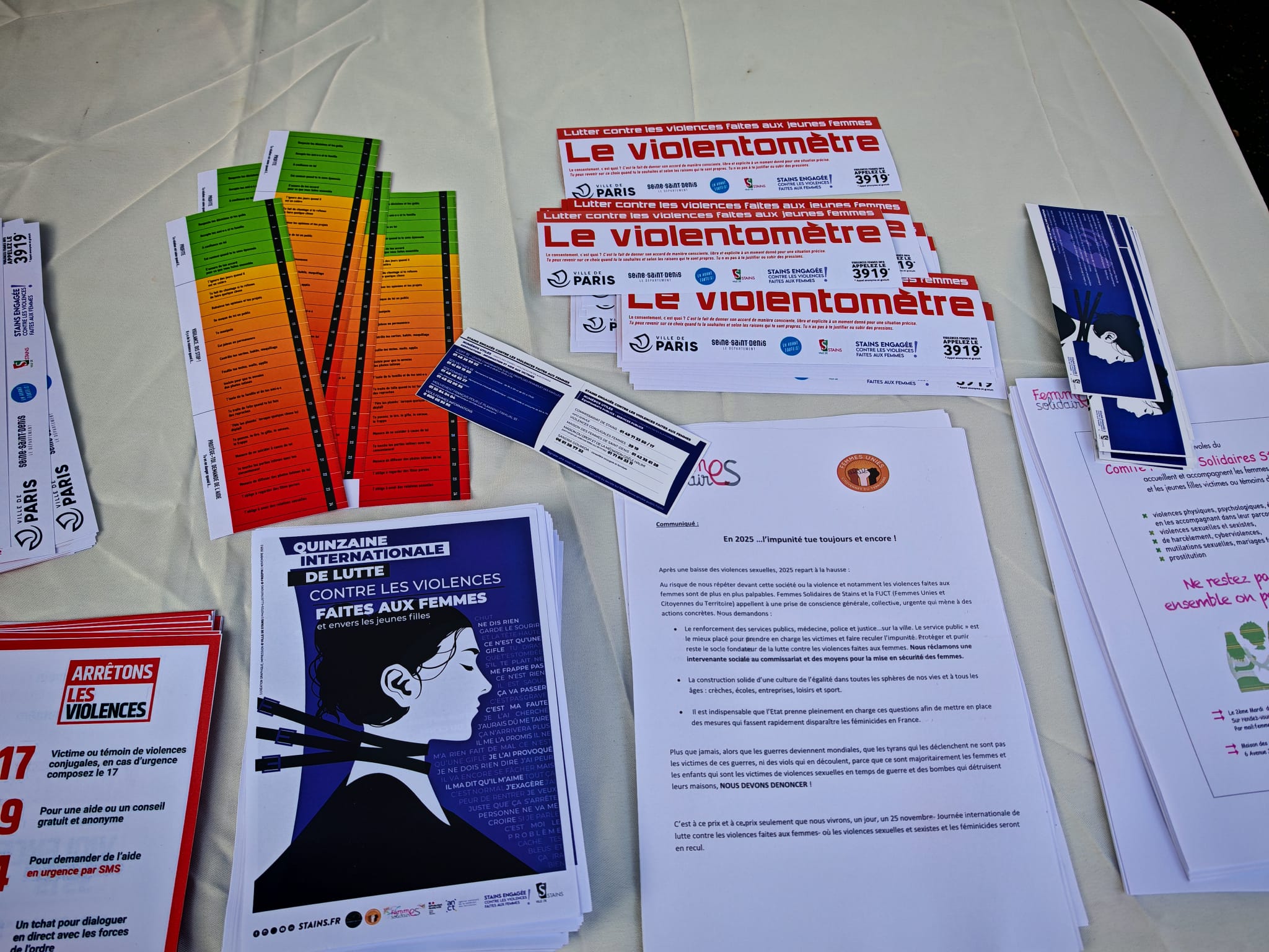 La Quinzaine internationale de lutte contre les violences faites aux femmes et envers les jeunes filles a débuté ce samedi 22 novembre à Stains, avec une mobilisation forte au marché du centre.