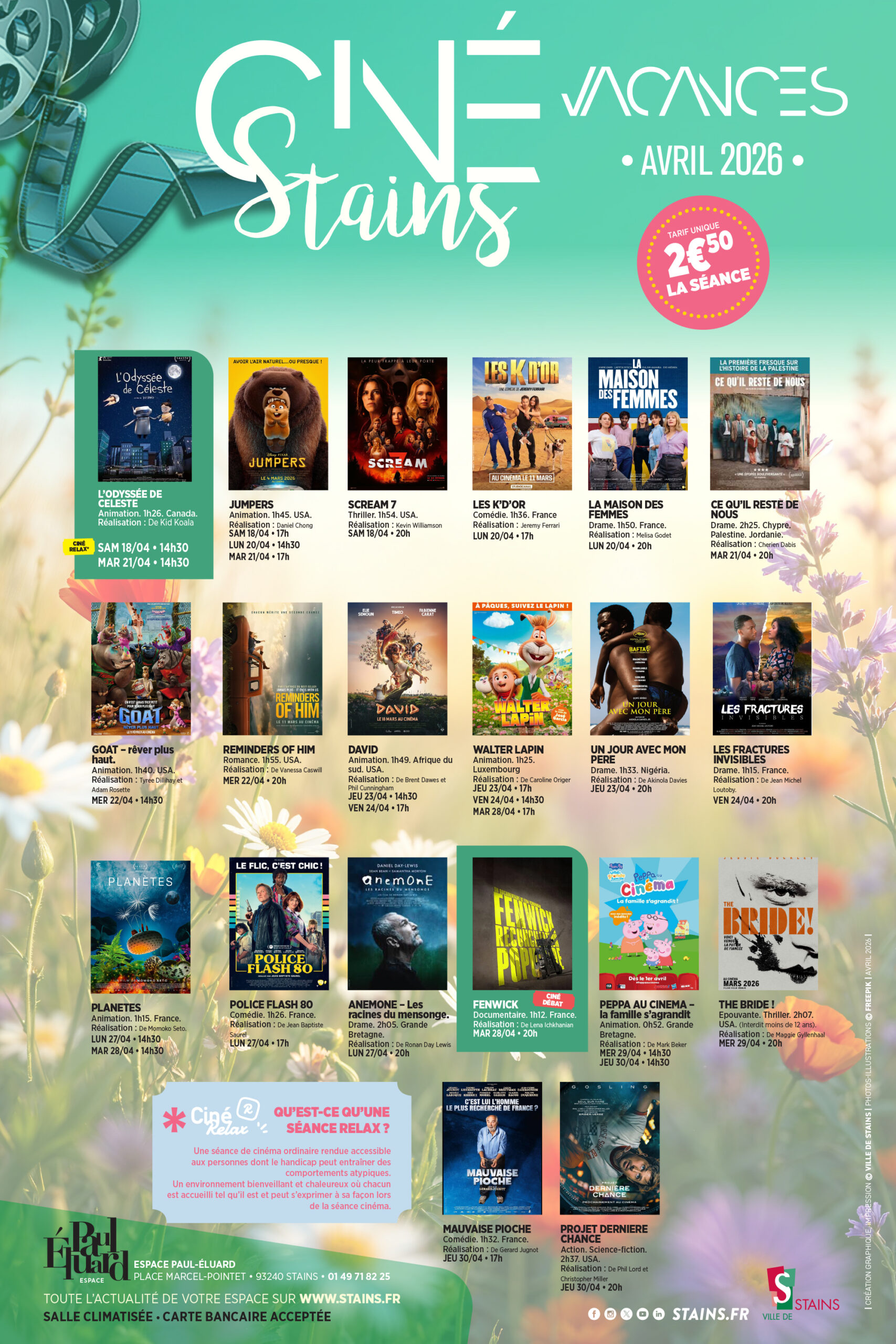 Avec sa grande salle de 500 places, l’Espace Paul-Éluard (EPE) présente chaque année une programmation variée pour tous les publics. Plusieurs grands noms de la chanson française s’y produisent, ainsi que l’Orchestre Symphonique Divertimento, installé en résidence à Stains et dirigé par la chef d’orchestre de renommée Zahia Ziouani. L’EPE accueille plusieurs festivals importants, tels que Banlieues Bleues ou Africolor. Il propose également des séances de cinéma pour tous les âges à prix réduit, et présente le Festival du Court-Métrage pour Jeune Public destiné aux enfants inscrits en élémentaire. L’Espace Paul-Éluard appartient au réseau des Théâtres de Ville en convention avec le Conseil Général de Seine Saint-Denis.