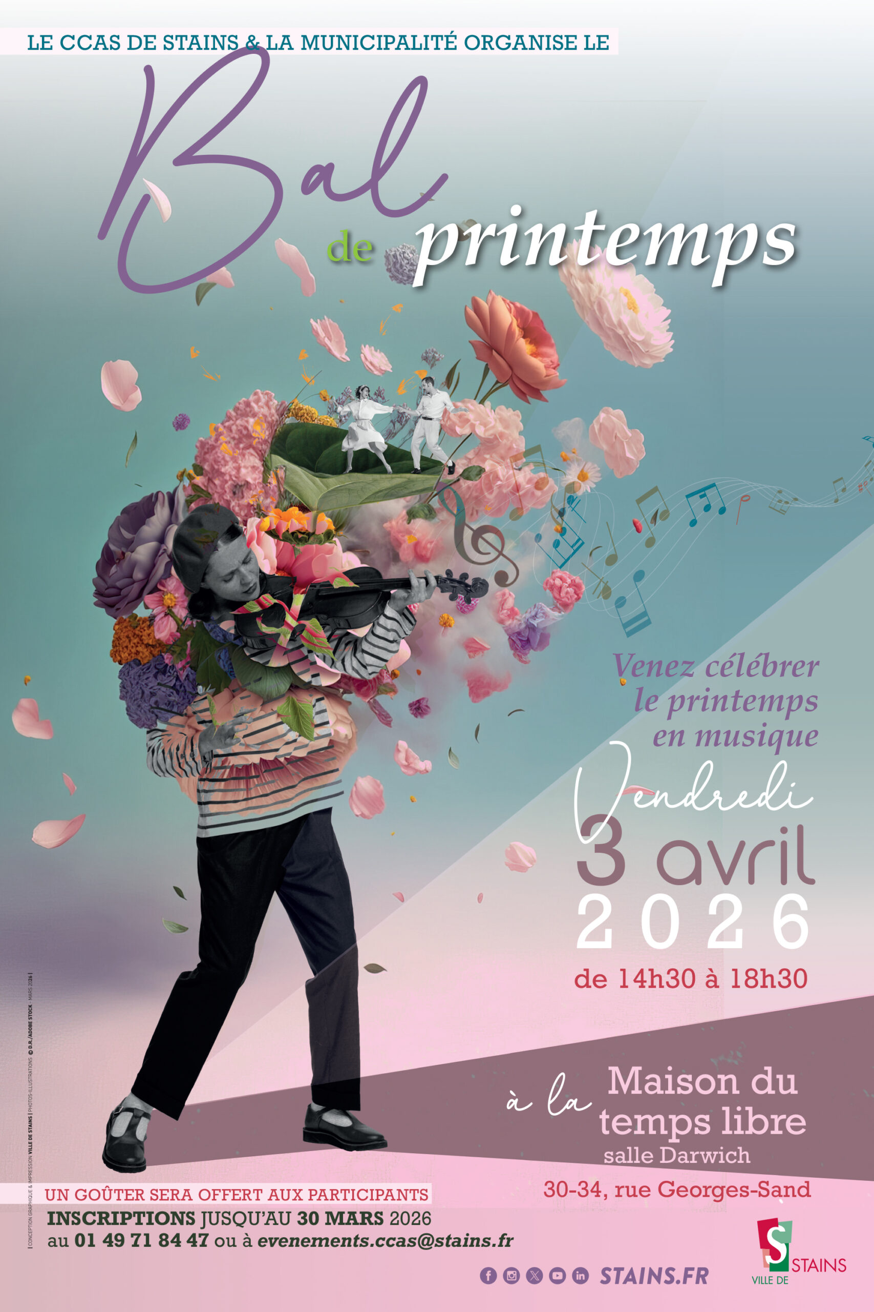 Le CCAS de Stains et la municipalité vous invitent à partager un moment convivial à l’occasion du bal de printemps, organisé le vendredi 3 avril 2026 à la Maison du Temps Libre, salle Darwich.