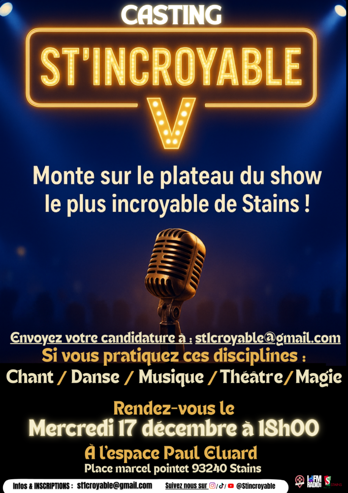 le casting de la 5ᵉ édition de St’incroyable, le show qui met en lumière les talents stainois, est lancé !