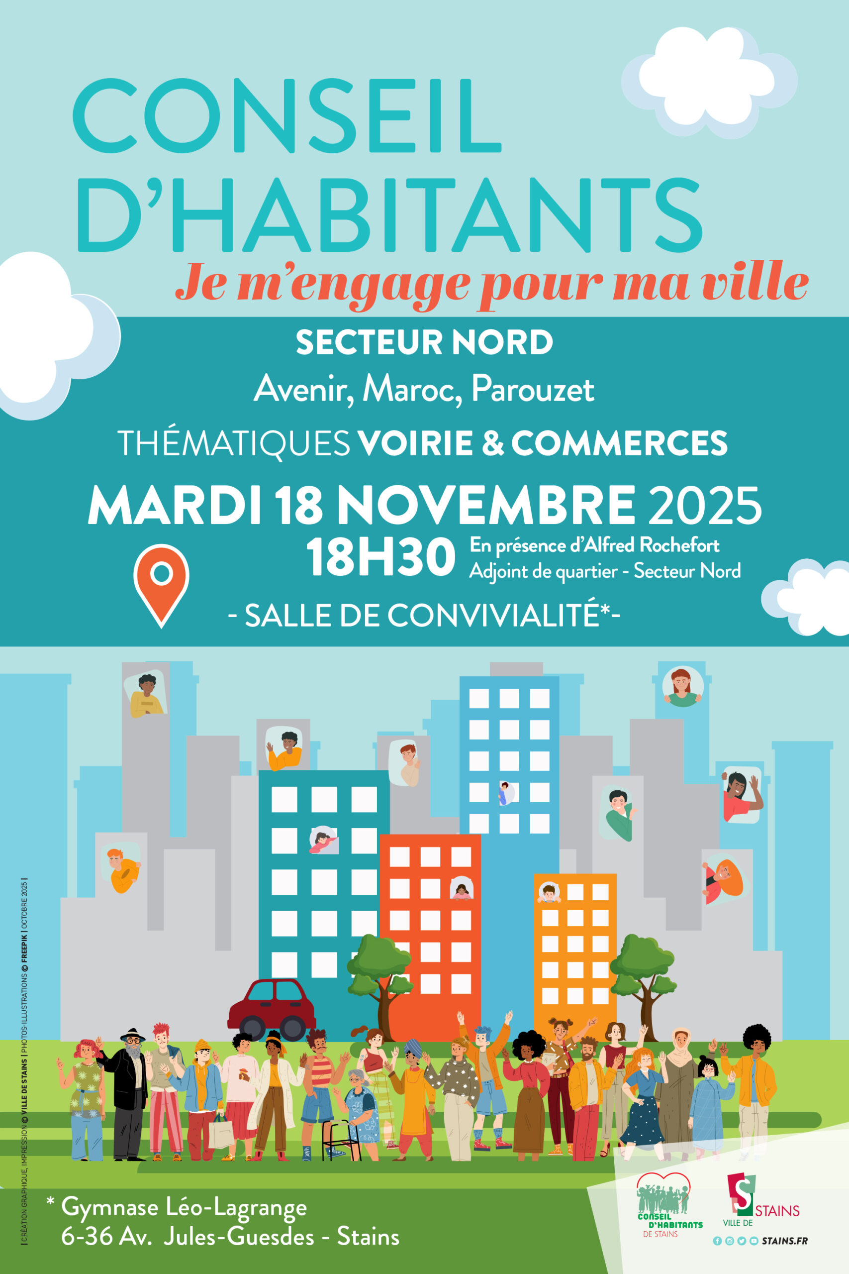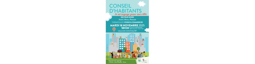 Les habitants des quartiers Avenir, Maroc et Parouzet sont invités à participer au prochain Conseil d’habitants du secteur Nord, le mardi 18 novembre 2025 à 18h30, à la salle de convivialité du gymnase Léo-Lagrange (6-36 avenue Jules-Guesde).
