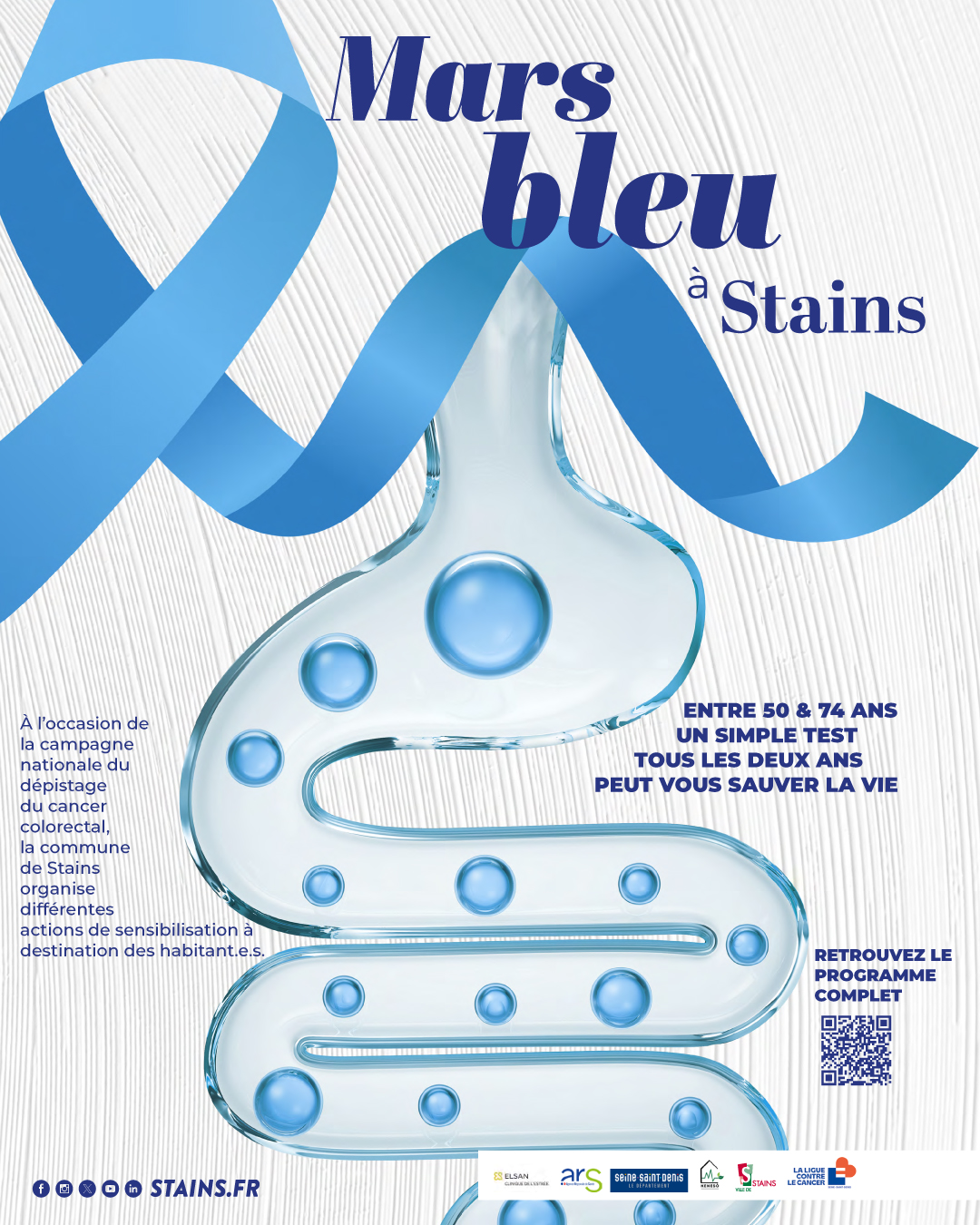 À l’occasion de Mars Bleu, mois national de sensibilisation au dépistage du cancer colorectal, la Ville de Stains se mobilise pour informer et accompagner les habitants.