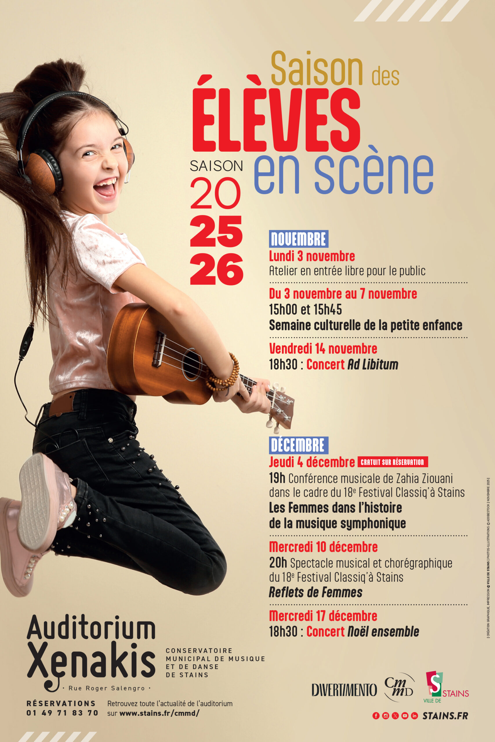 Tout au long de l’année, d’autres temps forts viendront rythmer cette saison musicale, toujours animée par le même esprit : faire vivre la musique à Stains, avec et pour tous.