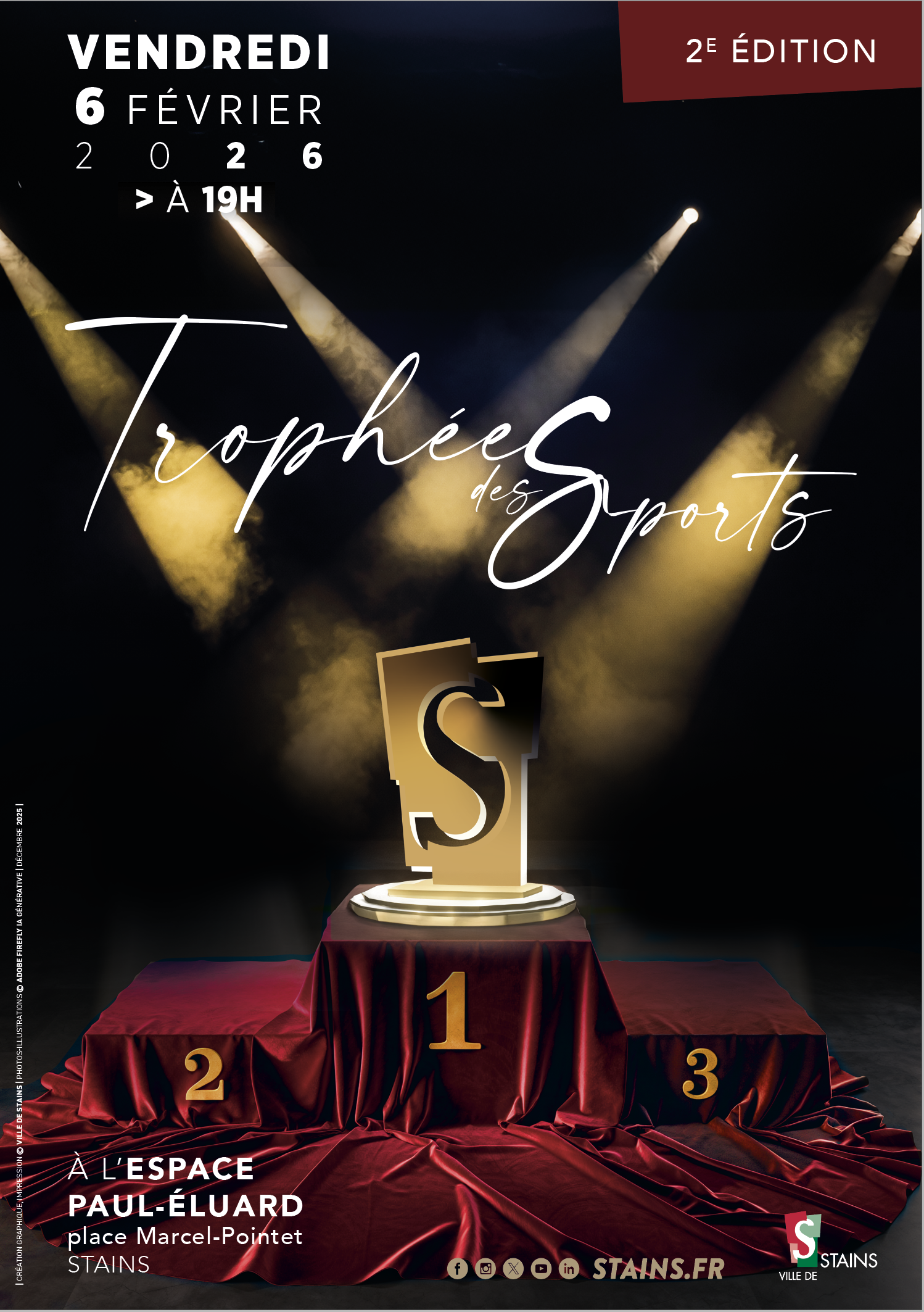 La Ville de Stains a le plaisir de vous inviter à la cérémonie des Trophées des Sports, qui se tiendra le vendredi 6 février 2026 à 19h, à l’Espace Paul Éluard.