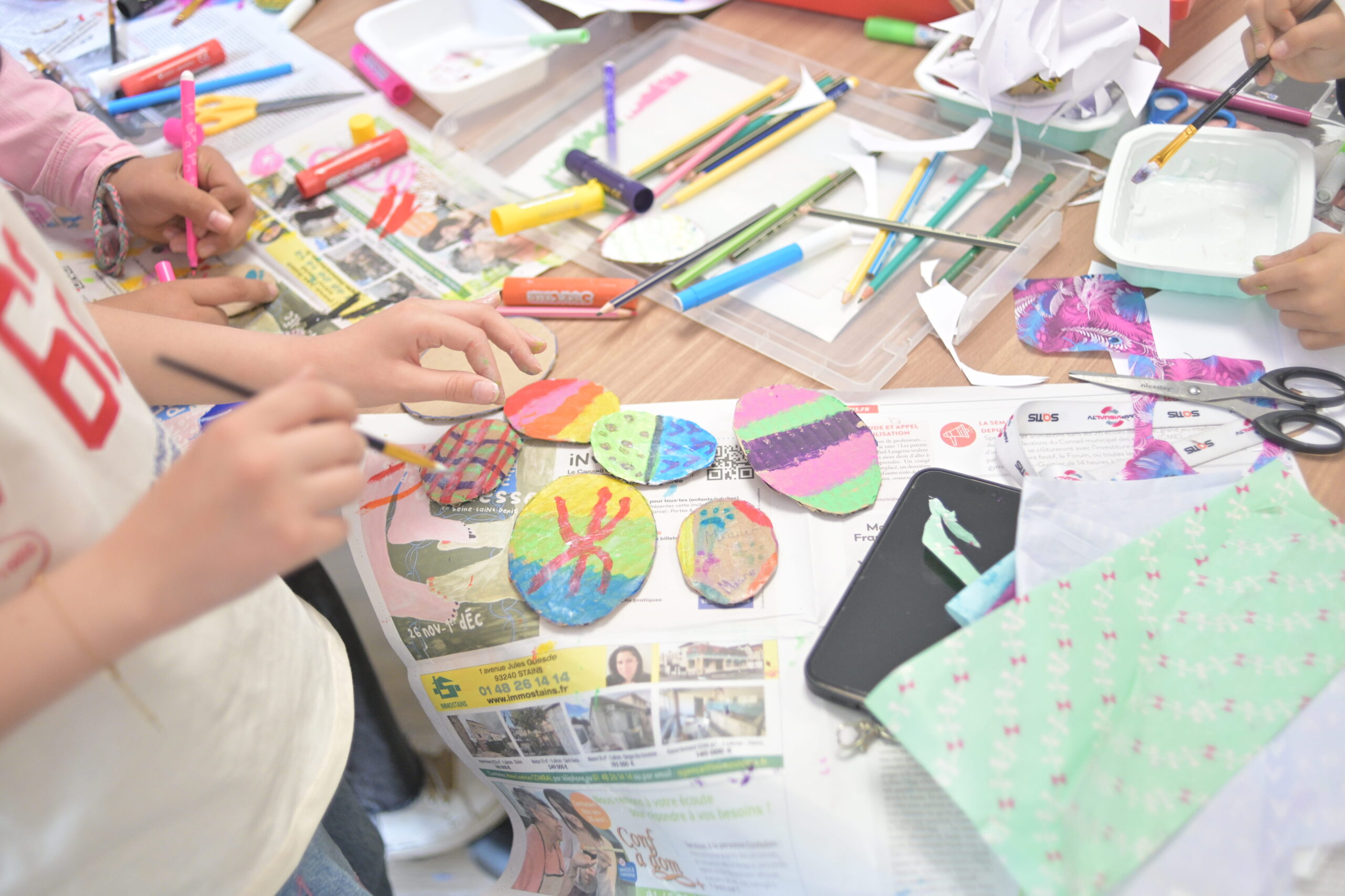 Feutres, peinture, découpage, collage… autour des tables, les enfants se sont appliqués à créer de jolies formes colorées, entre dessins minutieux et créations originales. Œufs décorés, motifs variés, associations de couleurs… chacun a laissé libre cours à son imagination dans une ambiance joyeuse et pleine d’énergie !