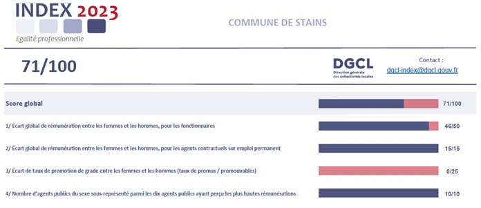 L’INDEX ÉGALITÉ PROFESSIONNELLE ENTRE LES FEMMES ET LES HOMMES POUR LA VILLE DE STAINS – ANNÉE 2023