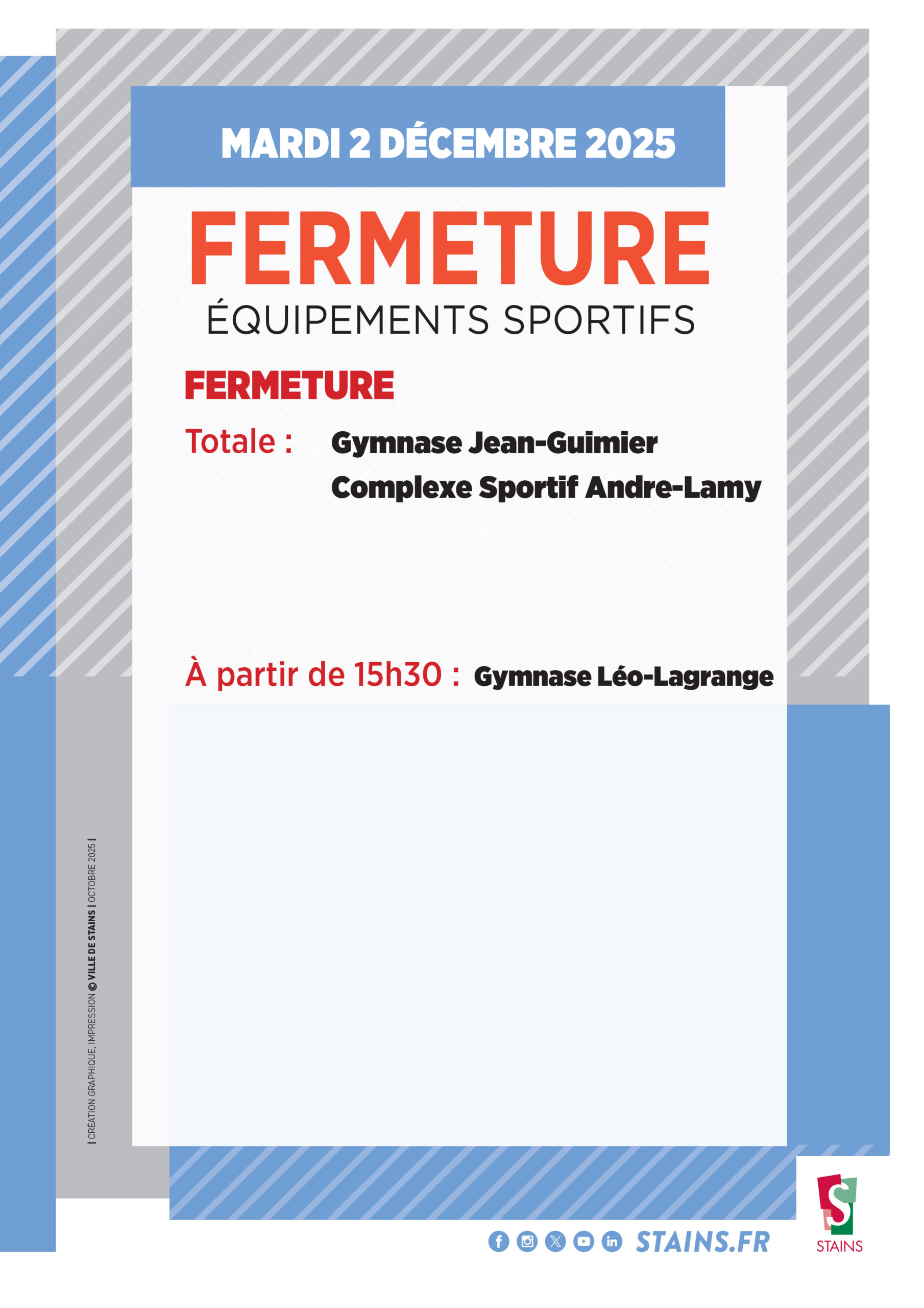 En raison d’un mouvement de grève annoncé ce mardi 2 décembre, la municipalité vous informe de la fermeture totale ou partielle de certains équipements sportifs.