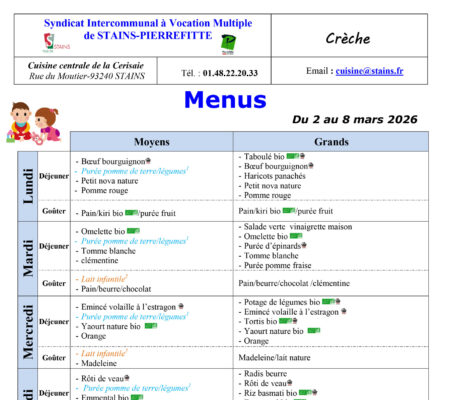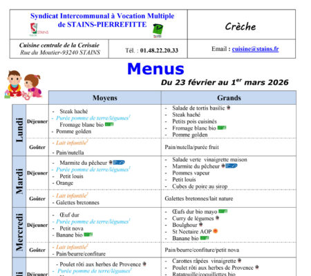 MENUS DES CRÈCHES
