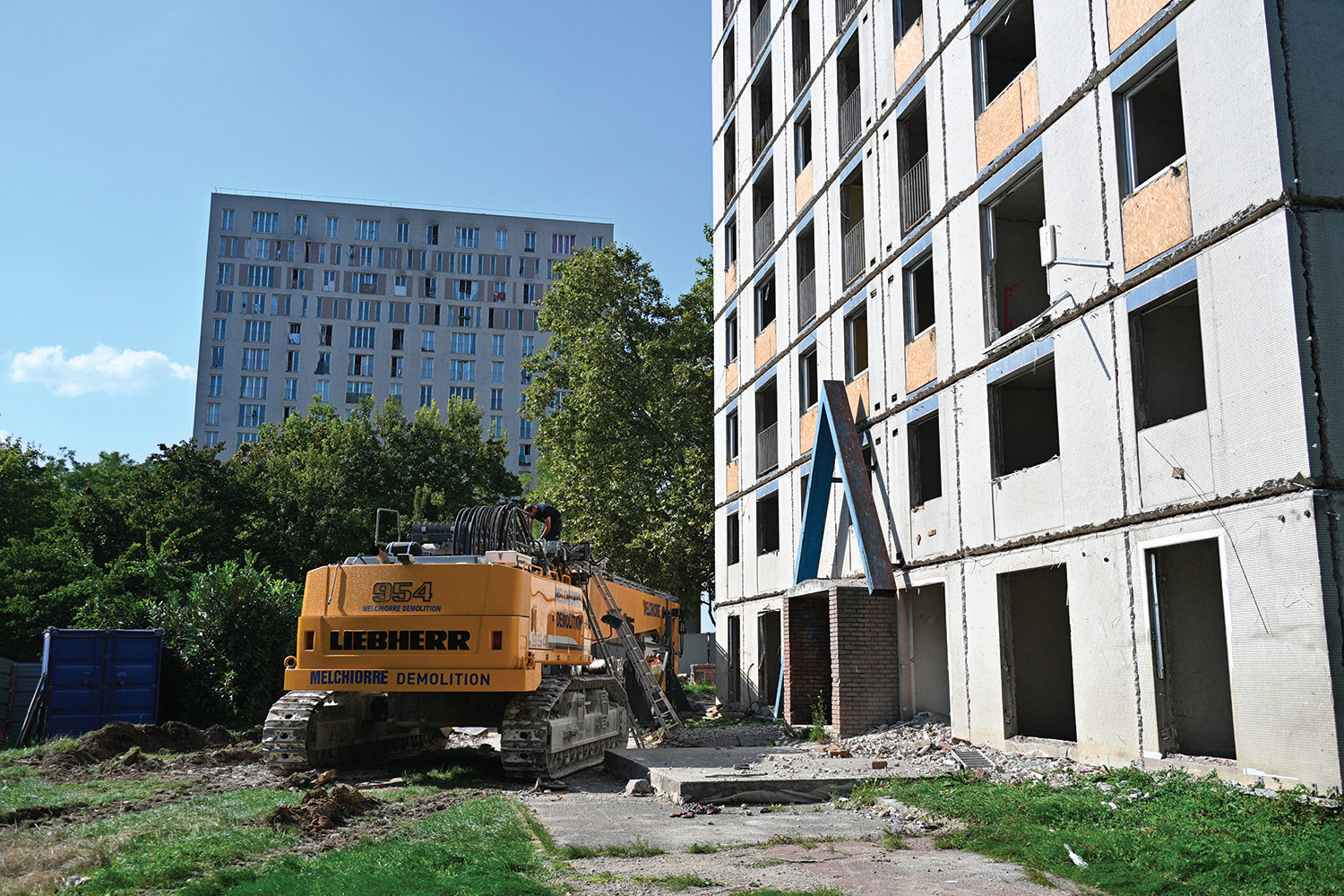 Trouver une solution pour les familles habitants les 36 logements, pour la plupart un T4 ou T5, n’avait pas été simple. Les relogements finis en 2018, un premier chantier avait commencé en 2019 avant d’être suspendu en 2020 après la découverte d’amiante. Le désamiantage a été finalisé à partir du mois de juin, ainsi que le retrait des isolations de façade.