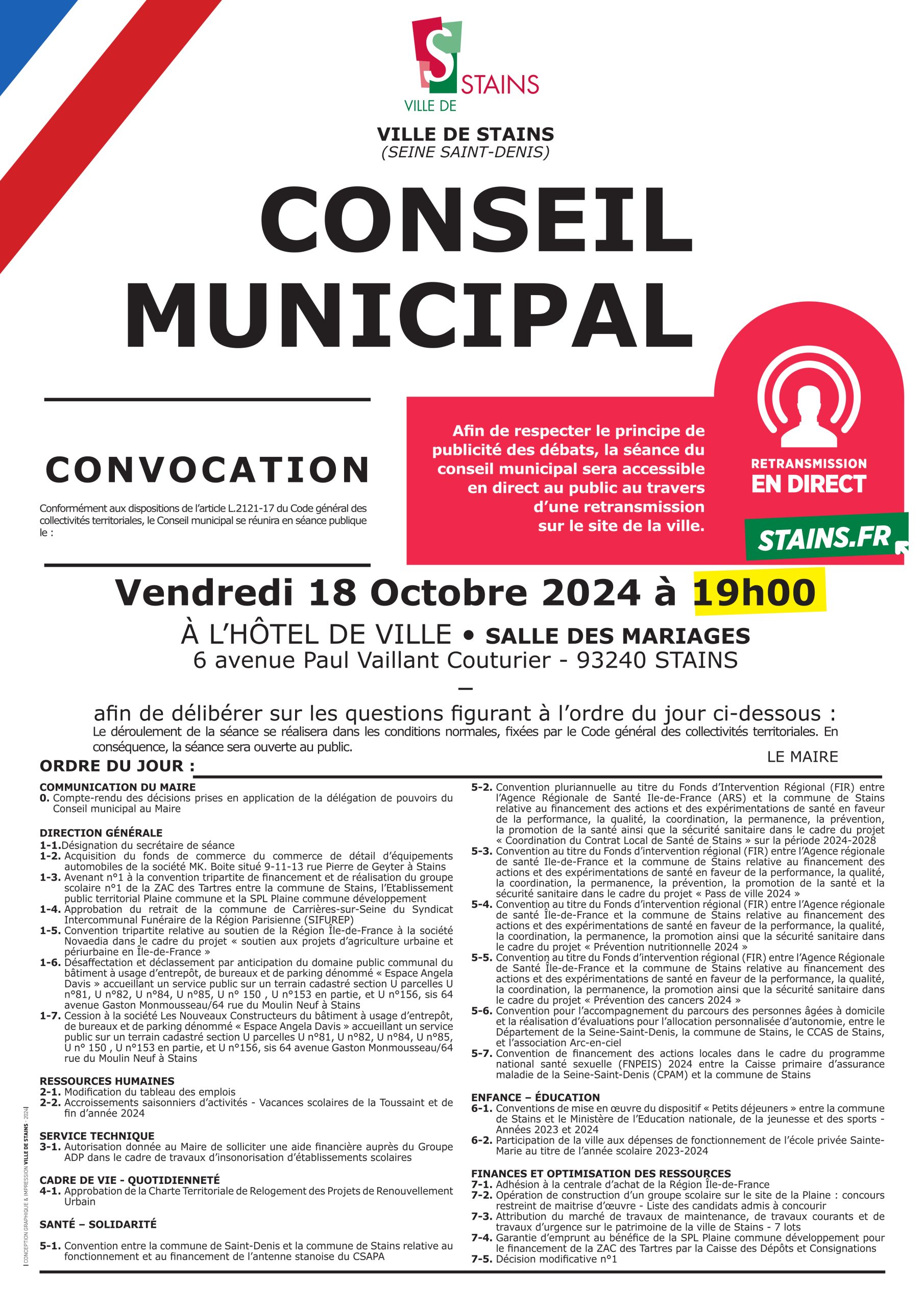 Conseil municipal du vendredi 18 octobre – Ordre du jour