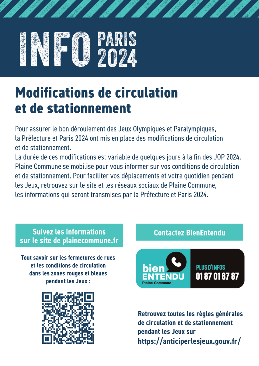 Pour faciliter vos déplacements et votre quotidien pendant les Jeux, retrouvez sur le site et les réseaux sociaux de Plaine Commune, les informations qui seront transmises par la Préfecture et Paris 2024.