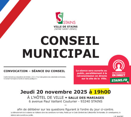 Conseil municipal du jeudi 20 novembre 2025 – Diffusion en direct à partir de 19h