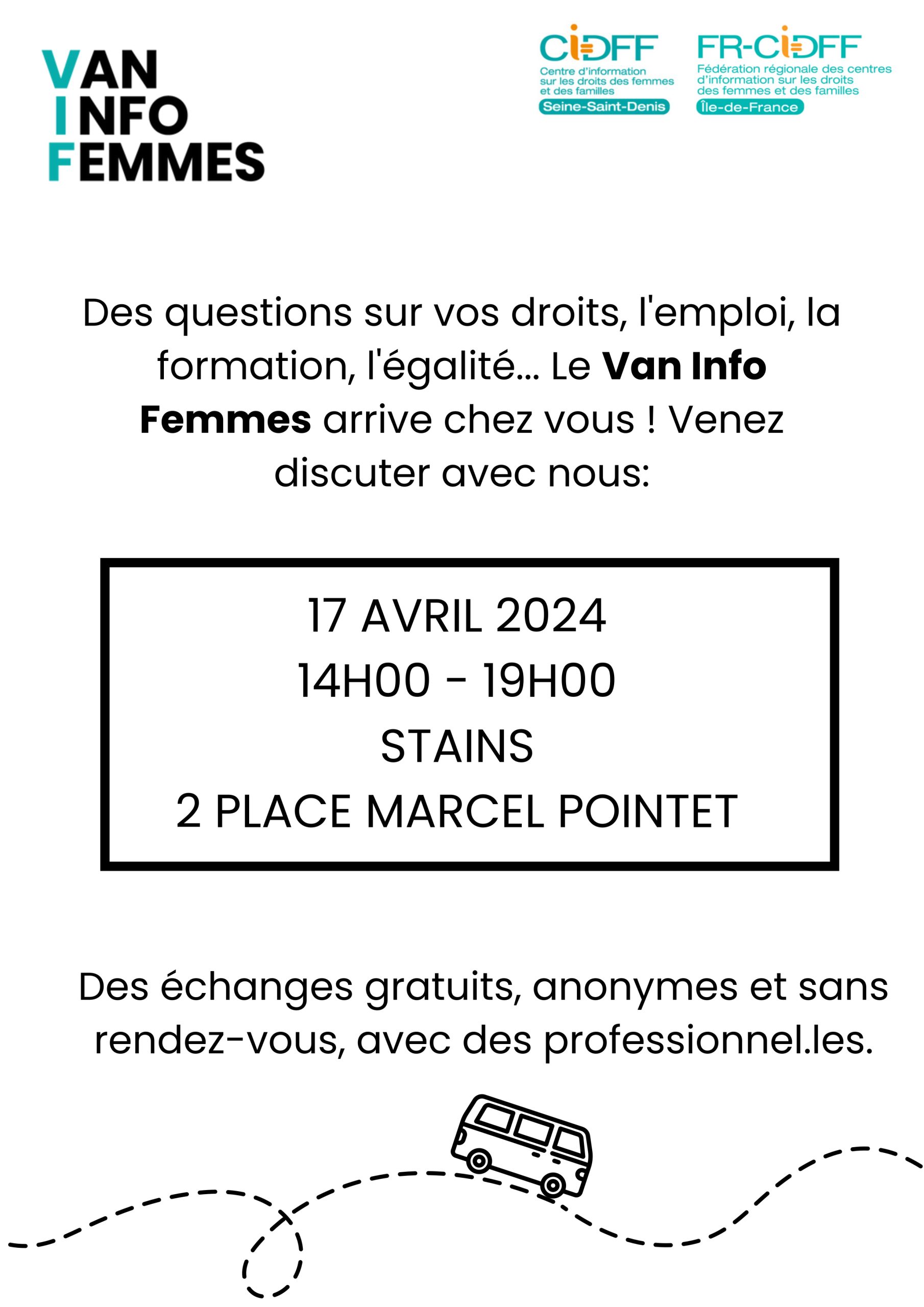 Le Van Info Femmes sera présent ce mercredi 17 avril sur la Place Marcel Pointet de 14h à 19h.