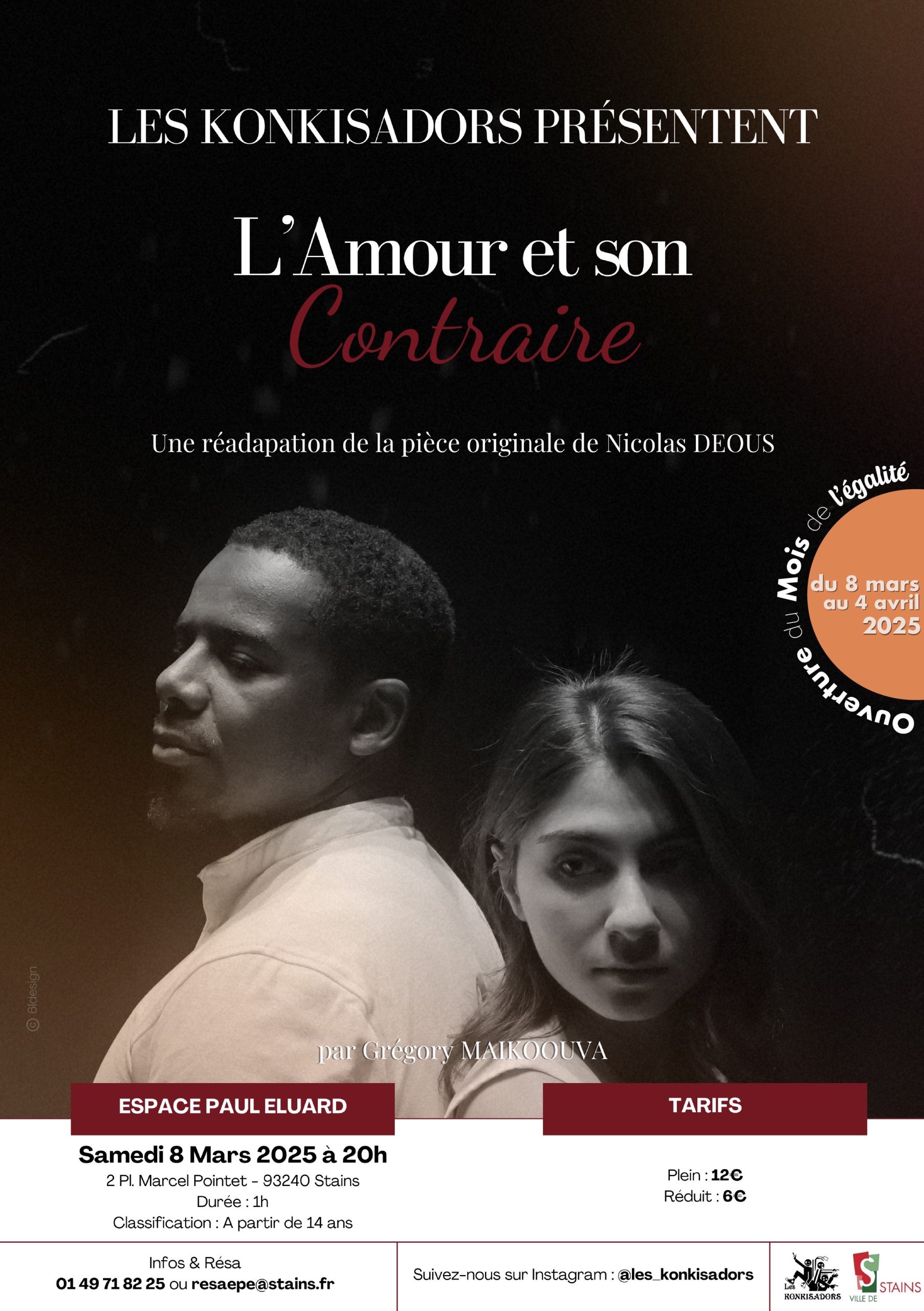 Si tu réponds correctement à toutes les questions tu gagneras 2 places pour assister à l’ouverture du mois de l’égalité avec la représentation de « l’amour et son contraire » le 08/03 à 19h30 à l’Espace Paul Eluard.
