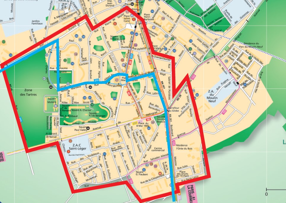- Boulevard Maxime Gorki (dans les deux sens depuis la place Henri Barbusse jusqu’à l’avenue Romain Rolland à Saint-Denis)