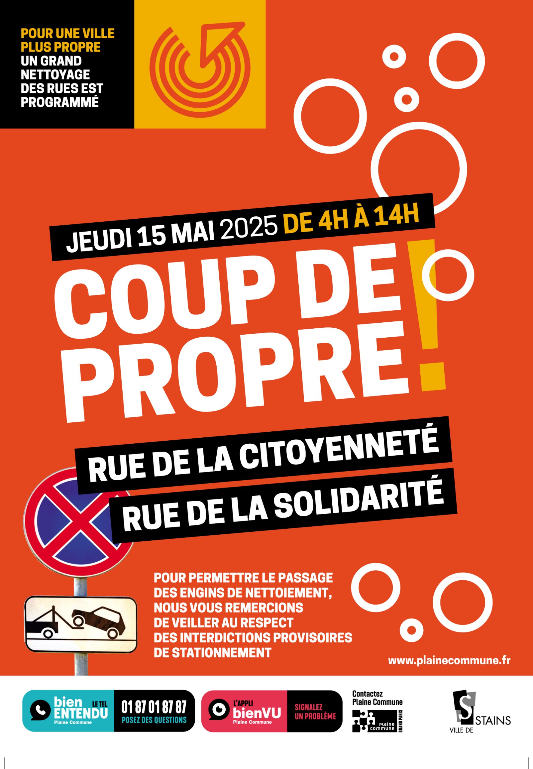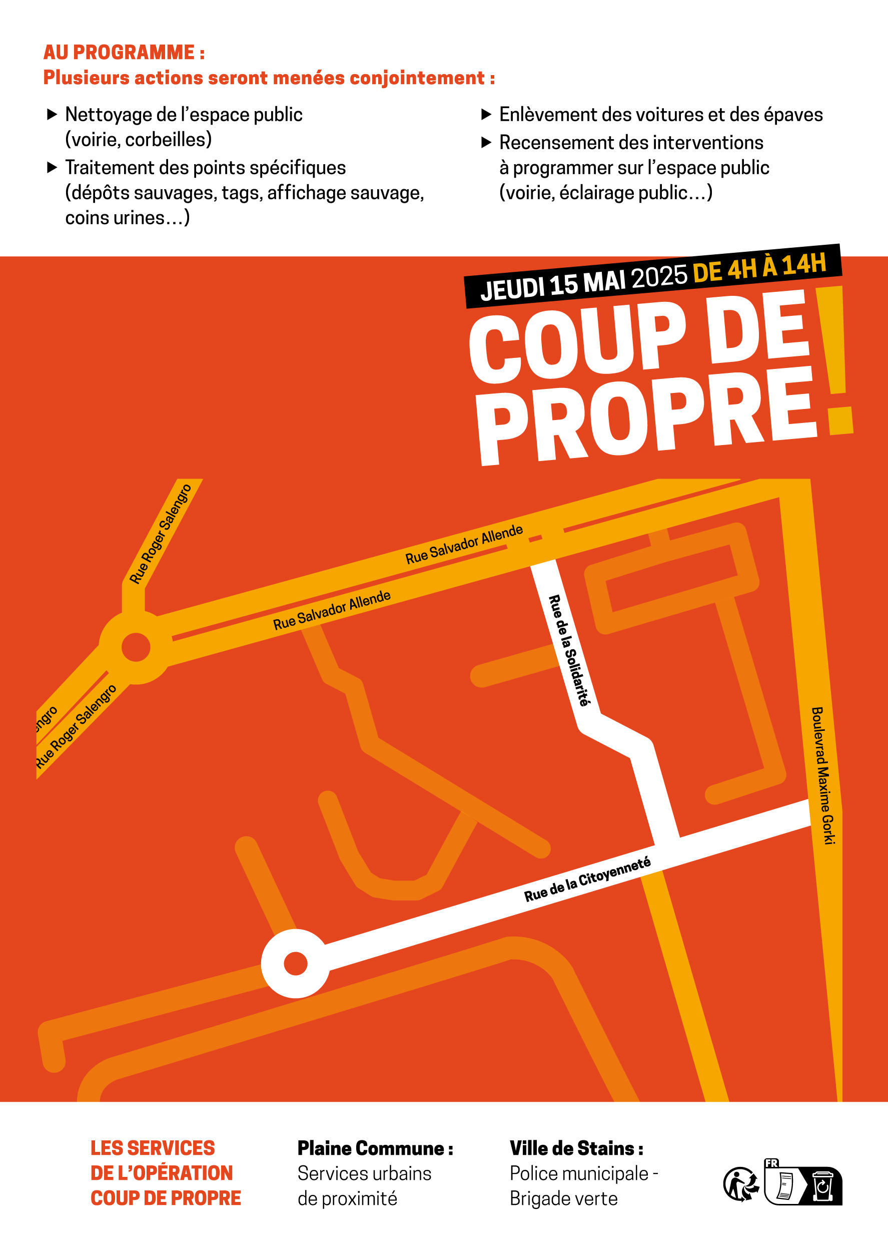 L’opération « Coup de propre » organisée par le service propreté et cadre de vie de Plaine Commune, les agents de la Police Municipale et de la Brigade Verte de la ville continue ce jeudi 15 mai 2025.