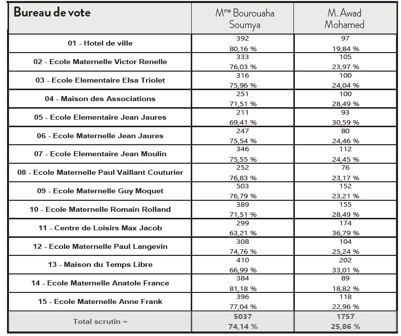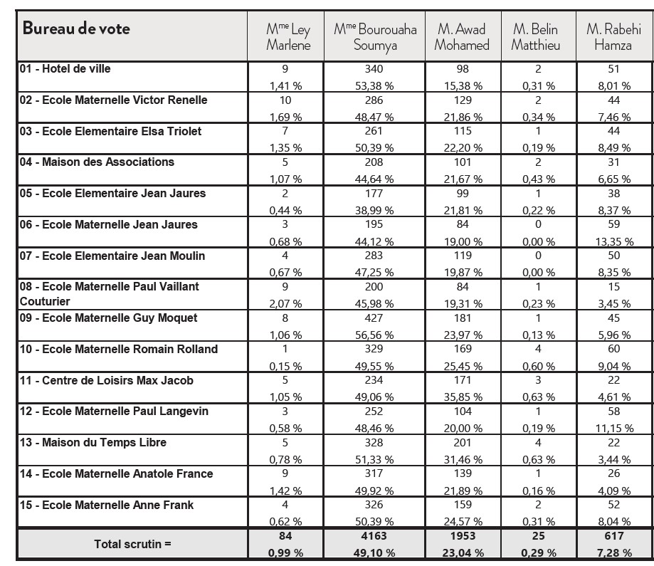 La députée sortante Soumya Bourouaha est arrivée en tête des 1er et 2nd tours dans tous les bureaux de vote stanois.