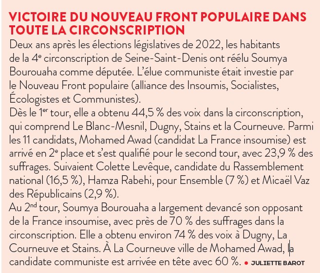 L’élue communiste, candidate du Nouveau Front populaire, représentera de nouveau les habitants de Stains et de toute la circonscription à l’Assemblée nationale.