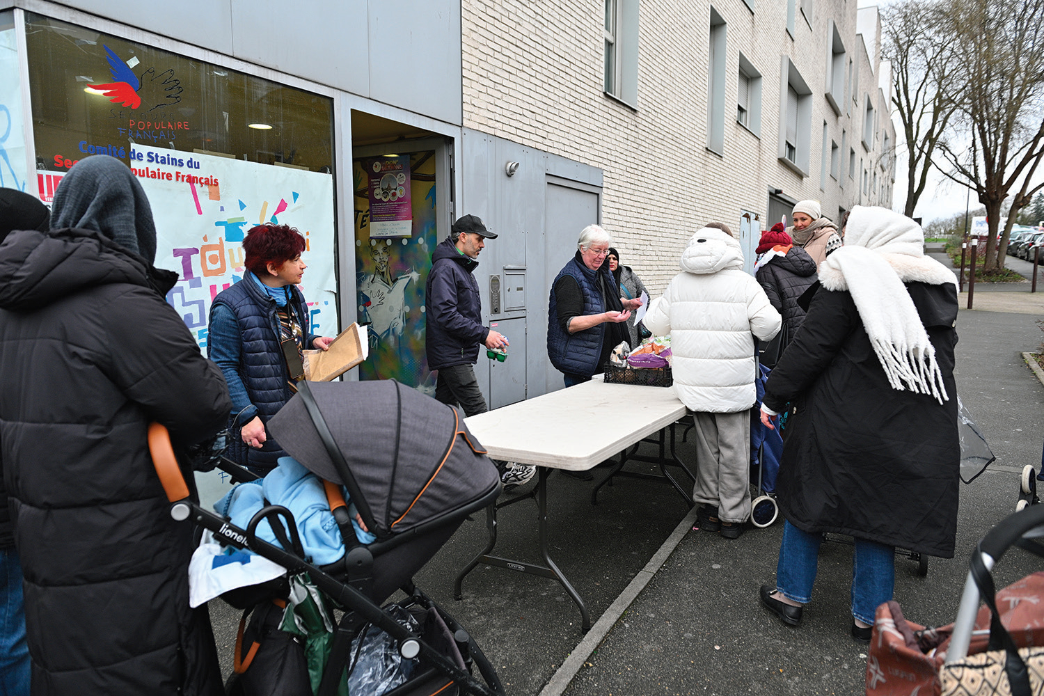 Purée, céréales, ou encore lait pour les enfants de chaque famille remplissent petit à petit les paniers. Comme chaque mardi et jeudi, le comité de Stains est à pied-d’oeuvre pour préparer les distributions alimentaires qui se déroulent l’après-midi.