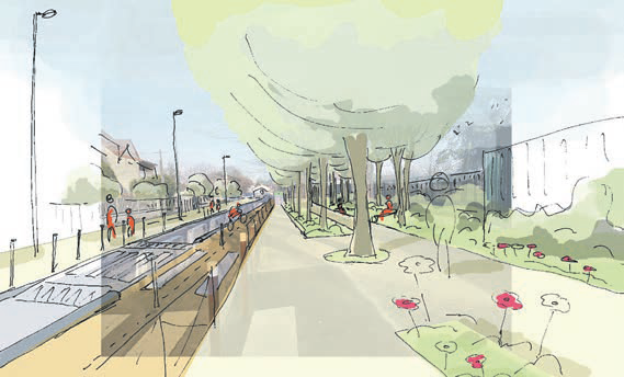 La ligne directrice de son réaménagement sera ce lien avec la nature. Elle a ainsi été pensée comme une « rue- jardin », dans la continuité de ce qui avait été présenté en novembre dernier. Des arbres seront plantés tout au long de la rue. Une piste cyclable sera aussi accessible, dans les deux sens, séparée de la chaussée par des glissières en bois. Une petite placette prendra place au niveau des jardins, pensée comme un ilôt de fraicheur. À proximité des Jardins familiaux, des places de stationnement végétalisées seront aménagées, pour une meilleure gestion des eaux pluviales.