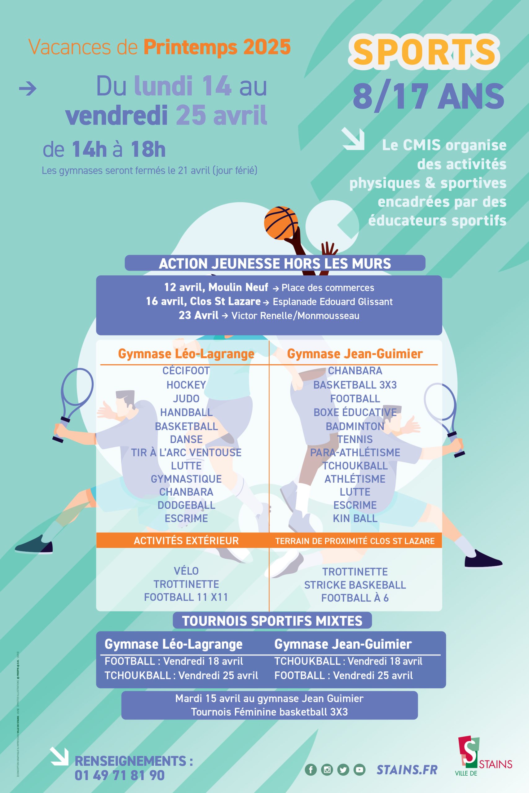 Vacances de printemps 2025 – Sports / CMIS pour les 8/17 ans