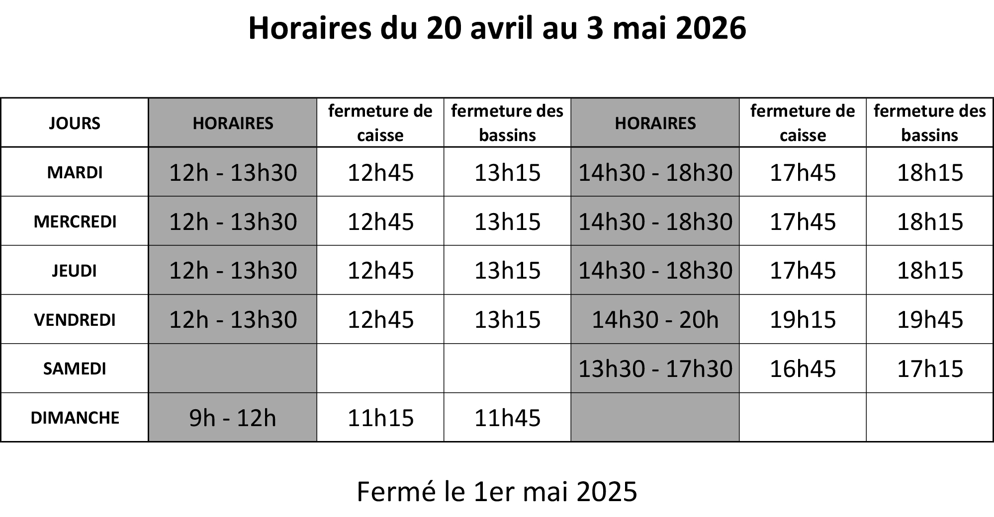 HORAIRES