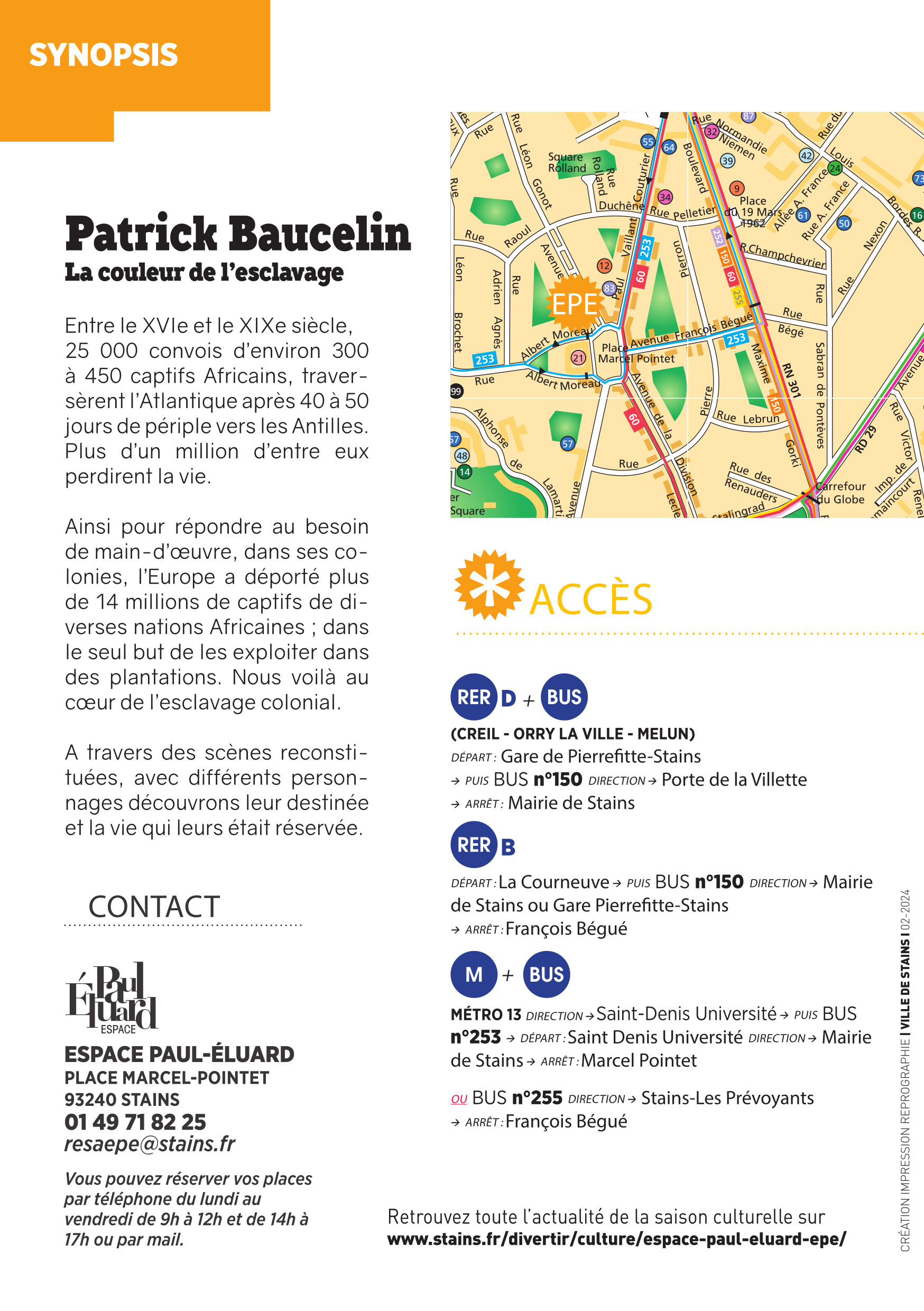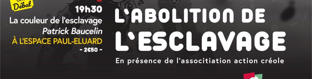 Le vendredi 10 mai à 18h30 à la place Aimé Césaire en présence de l’association Action Créole suivi du ciné débat autour du film « La couleur de l’esclavage » réalisé par Patrick Baucelin à 19h30 à l’espace Paul Eluard.