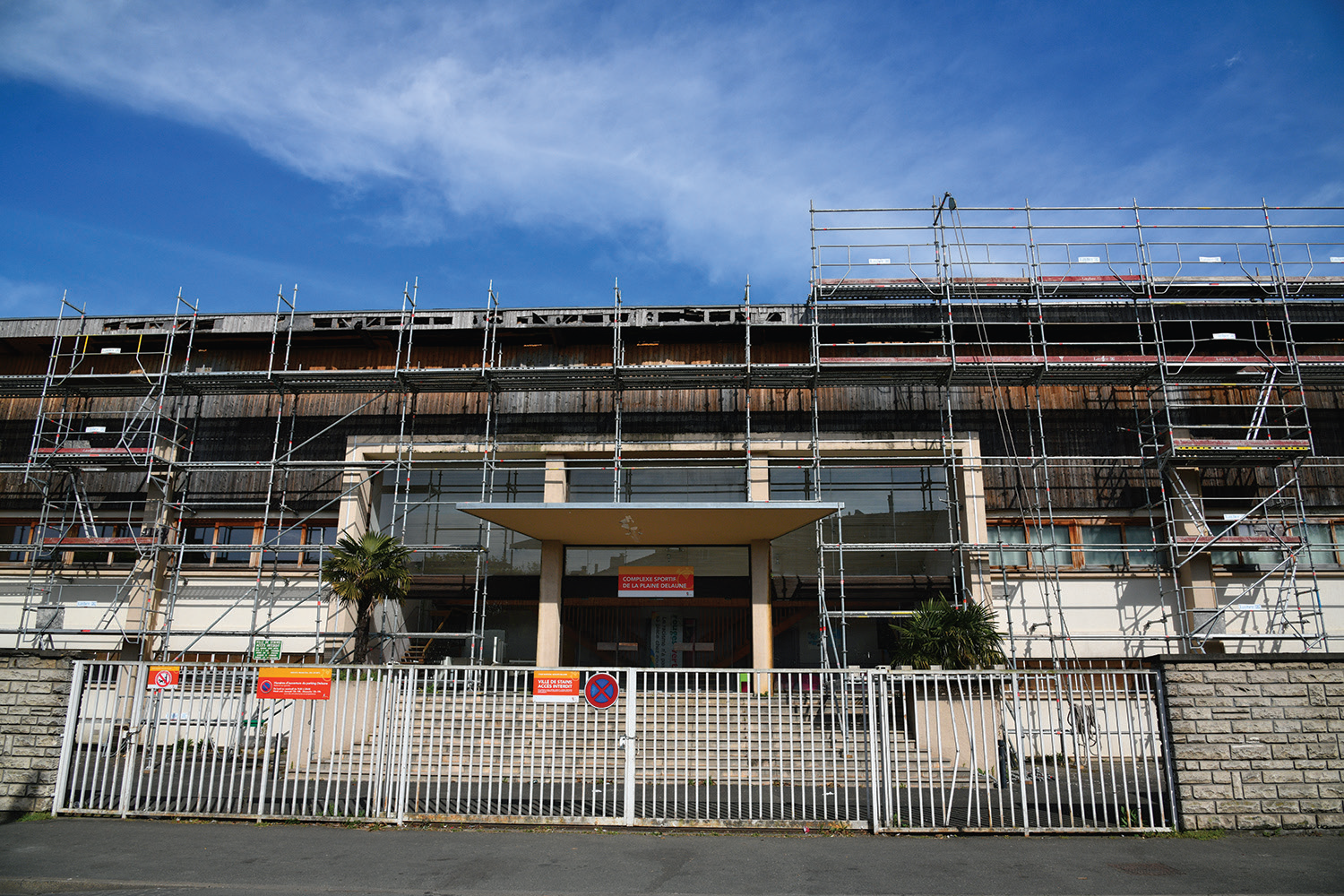 Dans un second, le lancement des travaux qui viennent de commencer. Preuve en est avec l’installation des échafaudages qui attirent l’oeil en passant rue Michel-Rolinkas. Cette réfection inclut l’ensemble de la toiture, du bardage et du traitement des évacuations d’eaux pluviales. La municipalité a pris la décision d’aller au-delà de la reprise des composants impactés par l’incendie. Pour cette phase de travaux, le délai de livraison prévisionnel est annoncé à fin juin 2025 pour un coût d’environ 510 000 €.